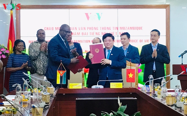 Nhân dịp này, Tổng Giám đốc Đài TNVN Nguyễn Thế Kỷ và ông Abdul Naguibo Abdula, Chủ tịch Hội đồng quản trị Đài Phát thanh Quốc gia Mozambique (RM), ký kết Thỏa thuận hợp tác giữa VOV và RM.