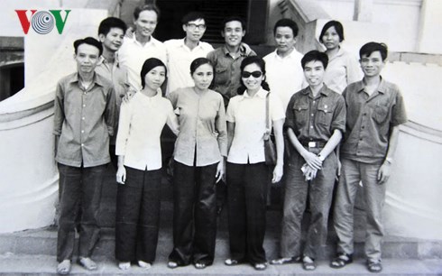 Một số cán bộ phóng viên phòng thời sự. Đài PTGP tại trụ sở Đài sau ngày 30/4/1975, tại số 7 Hồng Thập Tự, quận 1, TP HCM. |