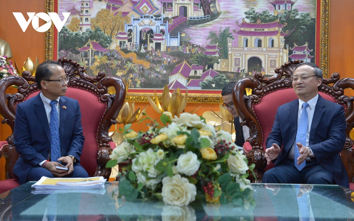 Tổng Giám đốc VOV Đỗ Tiến Sỹ (phải) tiếp Đại sứ Campuchia Chay Navuth - Ảnh: Trung Hiếu/ VOV |
