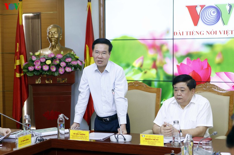 Phát biểu tại đây, ông Võ Văn Thưởng nhấn mạnh: "Đối với cơ quan báo chí như Đài TNVN đối với công tác này là chúng ta thực hiện kép 2 nhiệm vụ. Một nhiệm vụ là lo cho việc chung và việc thức 2 là lo cho việc của Đài. Tôi đề nghị các đồng chí phải tiếp tục quan tâm lãnh đạo, chỉ đạo, tuyên truyền, quán triệt trong cán bộ đảng viên, phóng viên, biên tập viên về các chủ trương, Nghị quyết của Đảng, pháp luật của Nhà nước về phóng chống tham nhũng. Trong việc tuyên truyền này, chúng ta phải quán triệt lại, quán triệt thêm để làm sao cán bộ, đảng viên và biên tập viên nắm chắc những vấn đề đặc biệt liên quan đến báo chí."