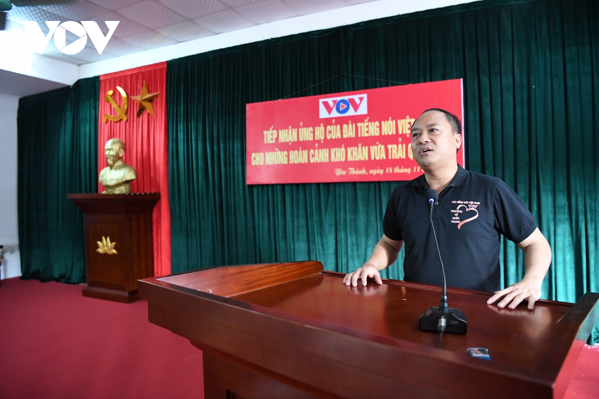 Phó Tổng Giám đốc VOV Vũ Hải Quang cho biết thêm, những món quà trong chuyến đi từ thiện ngày 18/11 tại những nơi chịu thiệt hại nặng nề bởi mưa lũ ở Nghệ An như Thanh Chương, Đô Lương, Yên Thành sẽ góp phần giúp đỡ các em nhỏ được cắp sách tới trường, động viên, chia sẻ, mang hơi ấm, lan tỏa yêu thương đến với đồng bào nơi đây, giúp các gia đình sớm vượt qua giai đoạn khó khăn này, phục hồi hoạt động sản xuất, ổn định cuộc sống. Qua đó, cũng mong muốn chính quyền địa phương, các nhà hảo tâm tiếp tục sẻ chia hơn nữa với người dân ở Nghệ An nói riêng và đồng bào cả nước nói chung.