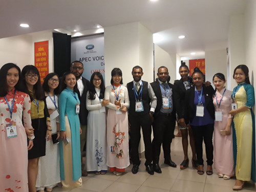 Diễn đàn Tiếng nói tương lai APEC 2017 (VOF 2017) khai mạc sáng 6/11, thu hút sự tham dự gia của hơn 120 đại biểu đại diện cho thanh niên, sinh viên ưu tú của 21 nền kinh tế thành viên APEC, trong đó Việt Nam có 17 đại biểu. Diễn đàn nhằm mục tiêu tăng cường hiểu biết về các mục đích của APEC, đóng góp vào quan hệ hữu nghị, đoàn kết và hợp tác giữa các thanh niên tại nền kinh tế APEC. Đồng thời cũng tăng cường sự hiệu quả của mạng lưới thanh niên trong các nền kinh tế APEC nhằm trao đổi ý kiến và kiến thức về các vấn đề toàn cầu, tăng cường giao lưu thanh niên trong khu vực APEC. Diễn đàn tập trung vào 2 ưu tiên: Đó là thúc đẩy tăng trưởng bền vững, sáng tạo và bao trùm; Thanh niên đóng góp tích cực vào việc tạo động lực mới , cùng xây dựng tương lai chung trong khu vực Châu Á Thái Bình Dương.