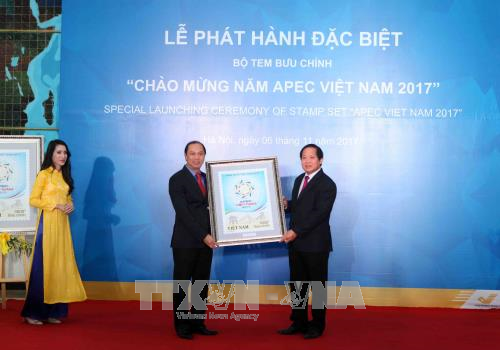 Hưởng ứng Tuần lễ cấp cao APEC, ngày 6/11, tại Hà Nội, Bộ Thông tin và Truyền thông chính thức ra mắt bộ tem "Chào mừng năm APEC Việt Nam 2017".