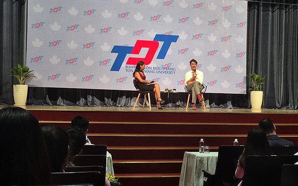 Cũng trong chiều 9/11, Thủ tướng Canada Justin Trudeau đến thăm trường Đại học Tôn Đức Thắng. Phát biểu trước các sinh viên, ông Justin Trudeau cho biết đất nước Canada rất tôn trọng sự đa dạng về văn hoá và luôn rộng mở đối với sinh viên nỗ lực tìm kiếm cơ hội học tập.