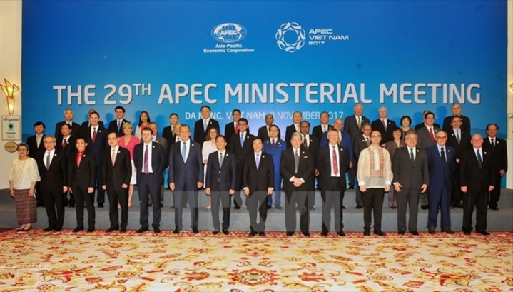 Trong khuôn khổ Tuần lễ Cấp cao APEC 2017, từ ngày 08-09/11, tại Đà Nẵng, diễn ra Hội nghị liên Bộ trưởng Ngoại giao - Kinh tế APEC 2017. Hội nghị ra Tuyên bố chung, trong đó các Bộ trưởng nhất trí nỗ lực thúc đẩy công tác, tập trung vào các nội dung ưu tiên sau: Thúc đẩy tăng trưởng bền vững, sáng tạo và bao trùm; Đẩy mạnh liên kết kinh tế khu vực sâu rộng; Nâng cao năng lực cạnh tranh, sáng tạo của doanh nghiệp siêu nhỏ, nhỏ và vừa trong kỷ nguyên số; Tăng cường an ninh lương thực và nông nghiệp bền vững, thích ứng với biến đổi khí hậu.