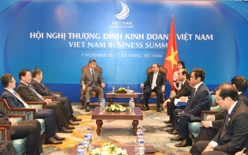 Trong khuôn khổ Hội nghị thượng định kinh doanh Việt Nam (VBS), Thủ tướng Nguyễn Xuân Phúc tiếp đoàn doanh nghiệp Trung Quốc dự Hội nghị Thượng đỉnh Kinh doanh Việt Nam 2017, do ông Trần Châu, Phó Chủ tịch Uỷ ban xúc tiến thương mại quốc tế Trung Quốc (CCPIT), dẫn đầu.