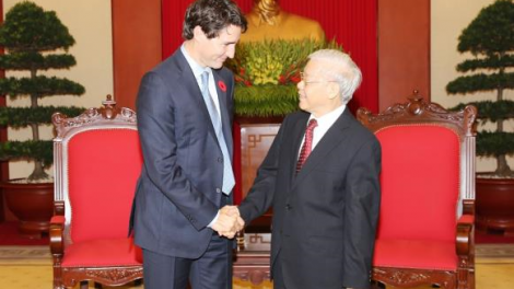 Tổng Bí thư Nguyễn Phú Trọng tiếp Thủ tướng Canada Justin Trudeau