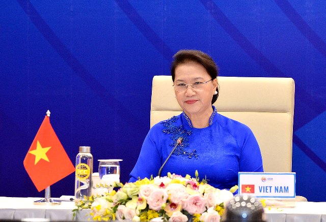 Phát biểu tại cuộc gặp, trên cương vị Chủ tịch AIPA lần thứ 41, Chủ tịch Quốc hội Nguyễn Thị Kim Ngân đánh giá cao nỗ lực chung của ASEAN trong đối phó với các thách thức chưa từng có tiền lệ, ủng hộ việc triển khai trên thực tế các sáng kiến của ASEAN, tiếp tục đồng hành, hỗ trợ chính phủ các nước ASEAN trong triển khai các giải pháp kiểm soát, ứng phó với đại dịch.