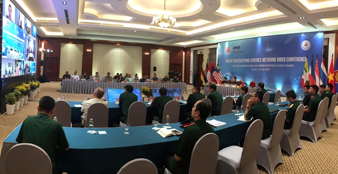 Toàn cảnh Hội nghị trực tuyến Mạng lưới các Trung tâm Gìn giữ hòa bình ASEAN điểm cầu Hà Nội ngày 16/7/2020. - Ảnh: Kiều Giang |