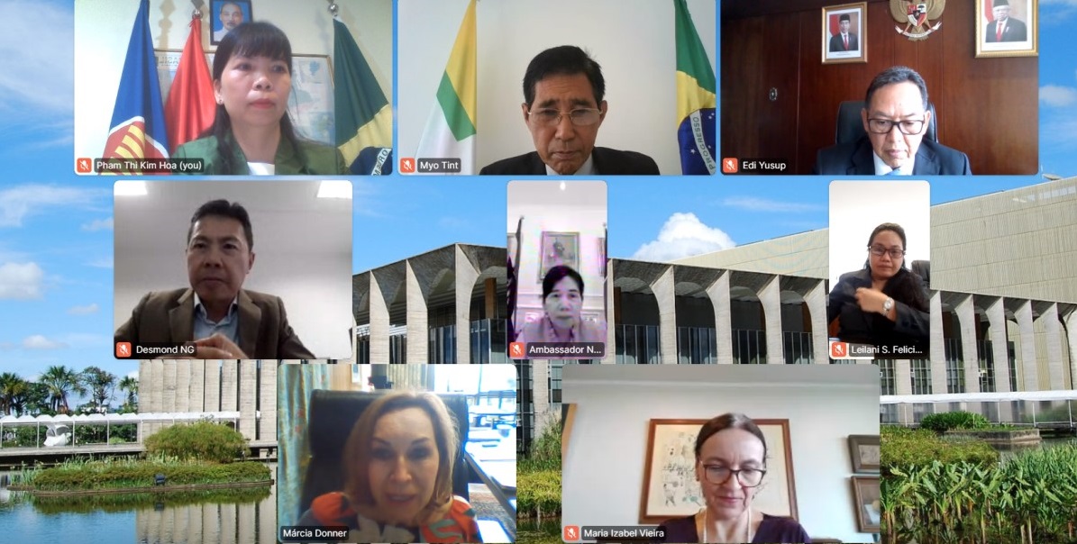 Ngày 22/03/2021 tại thủ đô Brasilia, nhóm Đại sứ các nước ASEAN gồm 7 nước gồm Việt Nam, Indonesia, Thailand, Malaysia, Myanmar, Singapore, Philippines tổ chức cuộc họp với Bà Marcia Donner Abreu- Thứ trưởng phụ trách các vấn đề về Châu Á, Thái Bình Dương và Nga - Bộ Ngoại giao Cộng hòa liên bang Brazil.