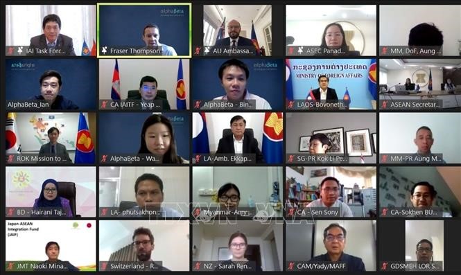 Ngày 8/6, khoảng 100 đại biểu tham dự Diễn đàn Các bên tham gia triển khai Kế hoạch Công tác giai đoạn IV (2021-2025) của Sáng kiến Liên kết ASEAN (IAI) được tổ chức theo hình thức trực tuyến - Ảnh: TTXVN |