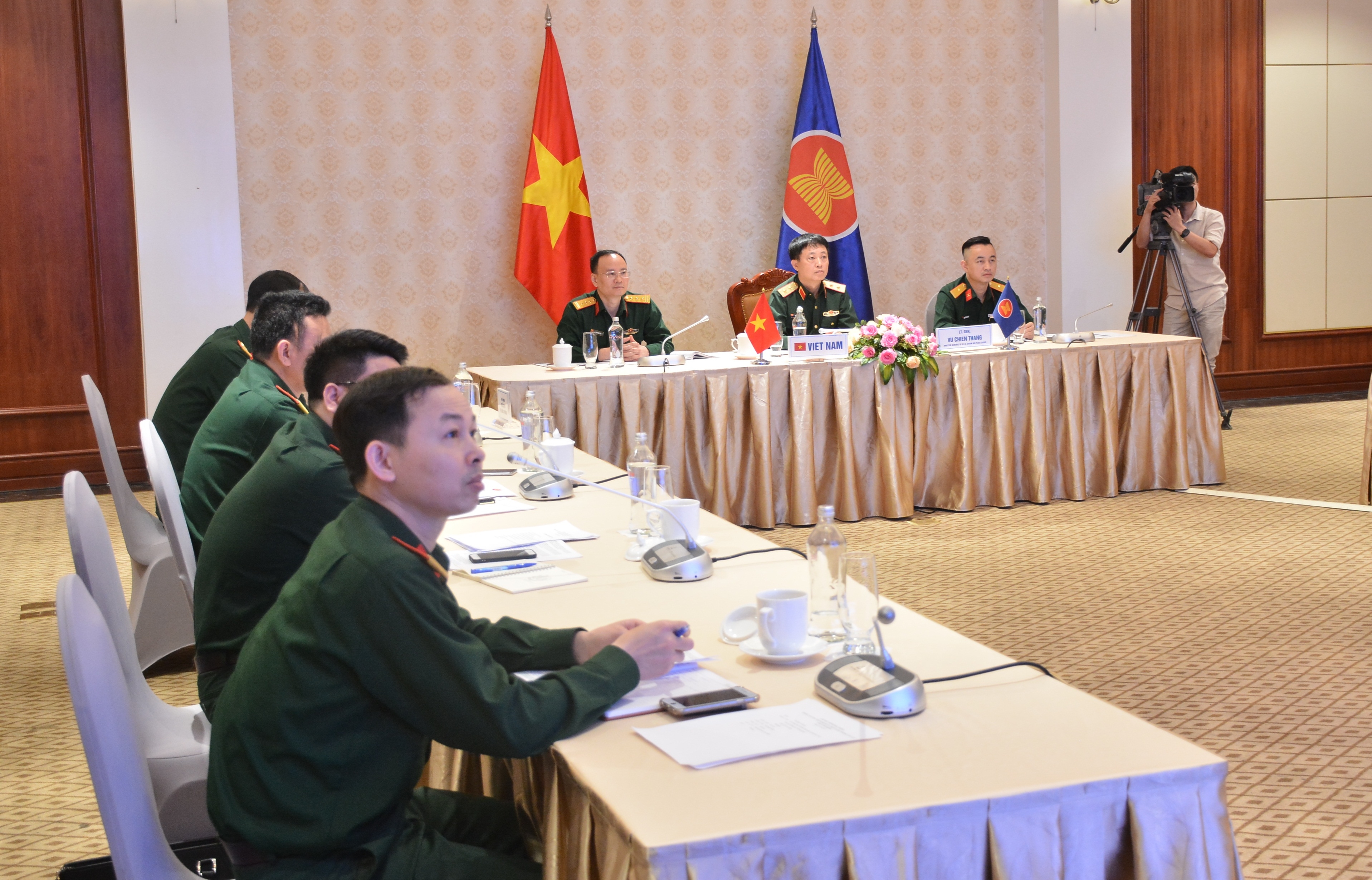 Hội nghị Quan chức Quốc phòng cấp cao Hiệp hội các quốc gia Đông Nam Á (ASEAN) mở rộng (ADSOM+) diễn ra ngày 8/4 theo hình thức trực tuyến, dưới sự chủ trì của Brunei. Đoàn Việt Nam do Thượng tướng Hoàng Xuân Chiến, Thứ trưởng Bộ Quốc phòng, làm trưởng đoàn, tham dự tại điểm cầu Hà Nội.