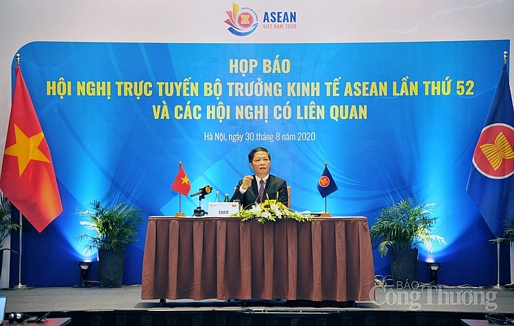 Sáng 30/8, tại Hà Nội, Bộ trưởng Công Thương Trần Tuấn Anh chủ trì cuộc họp báo thông tin về kết quả Hội nghị Bộ trưởng Kinh tế Hiệp hội các quốc gia Đông Nam Á (ASEAN) lần thứ 52 và các hội nghị có liên quan (AEM-52) được tổ chức trực tuyến từ ngày 22 đến ngày 29 tháng 8 năm 2020.
