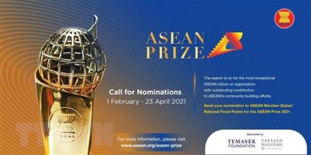 Ban thư ký Hiệp hội các quốc gia Đông Nam Á (ASEAN) vừa phát động Giải thưởng ASEAN năm 2021. Đây là năm thứ tư giải thưởng danh giá này được tổ chức nhằm vinh danh các công dân ASEAN xuất sắc hoặc các tổ chức trong khu vực có những đóng góp đặc biệt vào việc củng cố xây dựng Cộng đồng ASEAN, thúc đẩy hội nhập khu vực, sự phát triển toàn diện và nâng cao nhận thức về ASEAN.