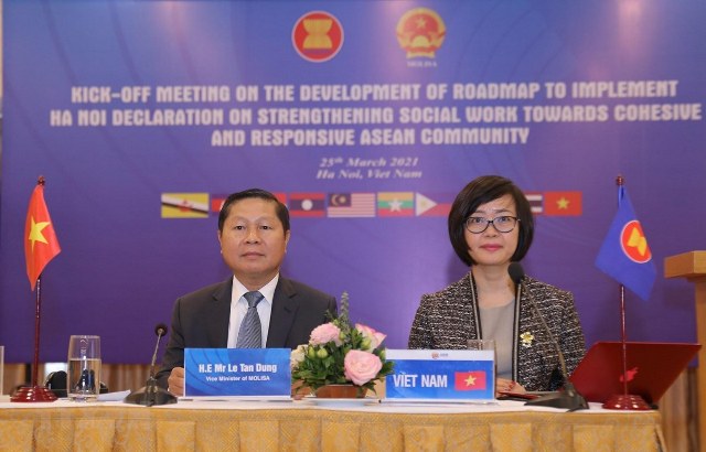 Hội nghị khởi động Lộ trình thực hiện Tuyên bố Hà Nội về “Thúc đẩy Công tác xã hội hướng đến một Cộng đồng ASEAN gắn kết và chủ động thích ứng” được tổ chức theo hình thức trực tuyến chiều 25/3. Hội nghị do Bộ Lao động Thương binh và Xã hội chủ trì, với vai trò Chủ tịch Hội nghị hiệp hội nghề công tác xã hội ASEAN giai đoạn 2020-2021.