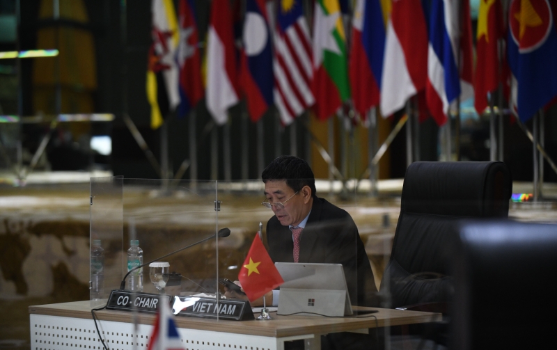 Đại sứ Nguyễn Hải Bằng, Trưởng Phái đoàn Việt Nam tại ASEAN đồng chủ trì cuộc họp. Ảnh: VOV |