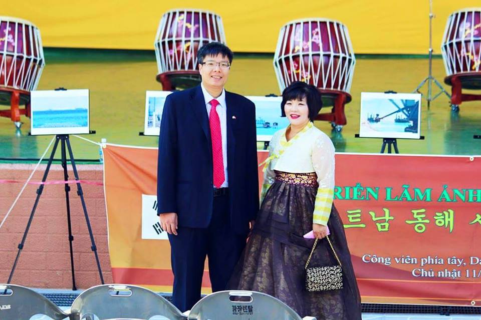 Tiến sĩ Trần Hải Linh tại triển lãm ảnh về chủ quyền biển đảo Việt nam tại Hàn Quốc