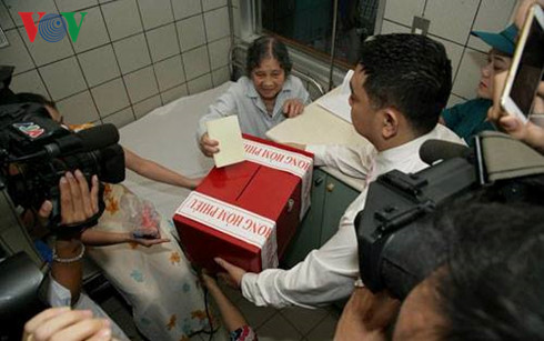 | Bệnh nhân bỏ phiếu tại giường bệnh |