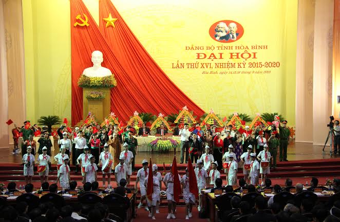 Đại hội Đảng bộ tỉnh Hòa Bình lần thứ XVI nhiệm kỳ 2015-2020 khai mạc sáng nay (15/9), tại thành phố Hòa Bình. Tham dự đại hội có gần 350 đại biểu, đại diện cho gần 60.000 đảng viên toàn tỉnh. Nhiệm kỳ 2010- 2015, tỉnh Hòa Bình đã giành được những thành tựu hết sức quan trọng trên tất cả các lĩnh vực trong đó 12/15 chỉ tiêu đạt và vượt so với Nghị quyết đề ra. Tốc độ tăng trưởng bình quân hằng năm đạt 9,1%. Tỷ trọng các ngành nông nghiệp, công nghiệp - xây dựng, và du lịch - dịch vụ chuyển dịch theo hướng tích cực. GDP bình quân đầu người năm 2015 đạt 36, 5 triệu đồng, tỷ lệ hộ nghèo còn 13%. Đời sống nhân dân tiếp tục được cải thiện. Văn hóa xã hội có bước tiến bộ mới; Chính trị, xã hội ổn định; Quốc phòng an ninh được giữ vững.