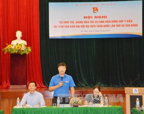 (VOV5) - Ngày 5/10, tại thành phố Đà Nẵng, Trung ương Đoàn Thanh niên Cộng sản Hồ Chí Minh tổ chức hội nghị trí thức trẻ, giảng viên trẻ và sinh viên trên địa bàn thành phố Đà Nẵng đóng góp ý kiến Dự thảo Văn kiện Đại hội đại biểu toàn quốc lần thứ XII của Đảng.