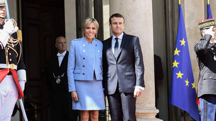 Tổng thống Pháp Macron và phu nhân trong lễ nhậm chức (Ảnh: AFP)