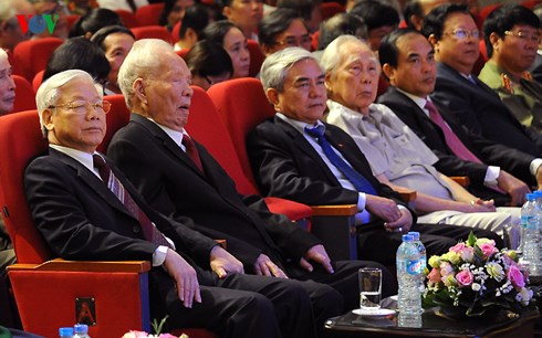 | Tổng Bí thư Nguyễn Phú Trọng, nguyên Chủ tịch nước Lê Đức Anh tới dự Lễ kỷ niệm 70 năm thành lập Đài TNVN |