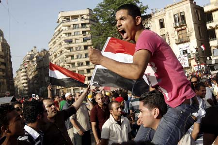 Người Ai Cập tham gia một cuộc biểu tình ở trung tâm thủ đô Cairo (Ảnh:AFP)