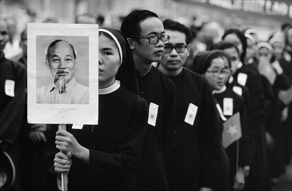 Tín đồ Công giáo ở TP HCM tham gia buổi lễ diễu hành kỷ niệm 5 năm ngày thống nhất vào 30/4/1980 - Ảnh: Philip Jones Griffiths