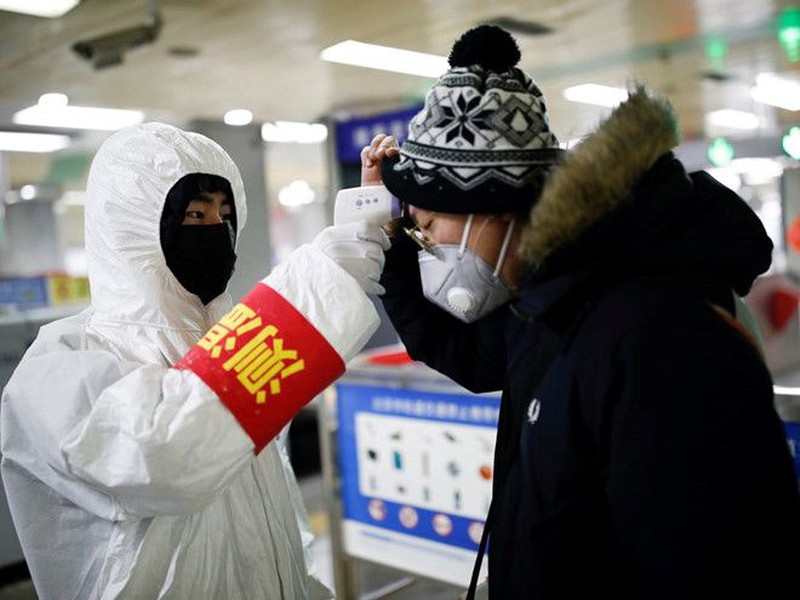 Kiểm tra thân nhiệt chống dịch COVID-19 ở Trung Quốc. Ảnh: AP