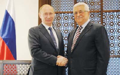 | Tổng thống Palestine Mahmoud Abbas (phải) tiếp Tổng thống Nga Putin.Nguồn Internet |