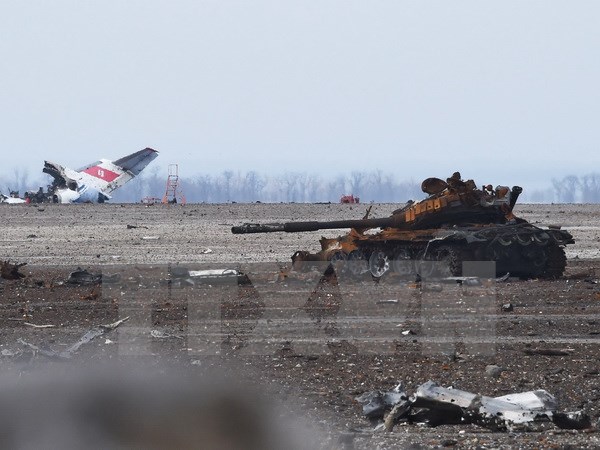 | Cảnh đổ nát tại sân bay quốc tế Sergey Prokofiev ở Donetsk, miền đông Ukraine sau các cuộc giao tranh. (Nguồn: AFP/TTXVN) |