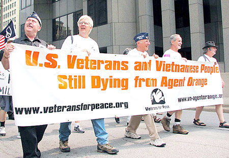 Các cựu chiến binh Mỹ thuộc Hội cựu chiến binh vì hòa bình biểu tình đòi bồi thường cho nạn nhân chất độc da cam năm 2008. Ảnh: Sggp.org.vn