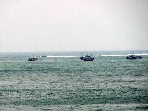 | Tàu thuyền của ngư dân huyện Tuy An, tỉnh Phú Yên trên đường vào cửa biển tránh trú bão. (Ảnh: TTXVN) |