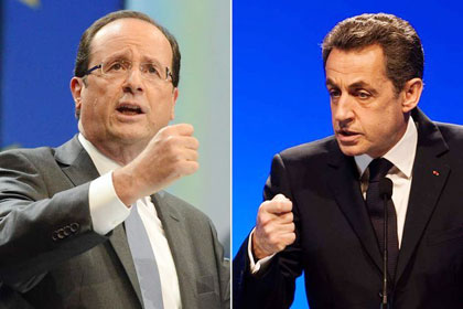 | Cuộc bầu cử Tổng thống Pháp dự kiến sẽ là cuộc đối đầu giữa hai ứng cử viên F.Hollande (trái) và N.Sarkozy. |