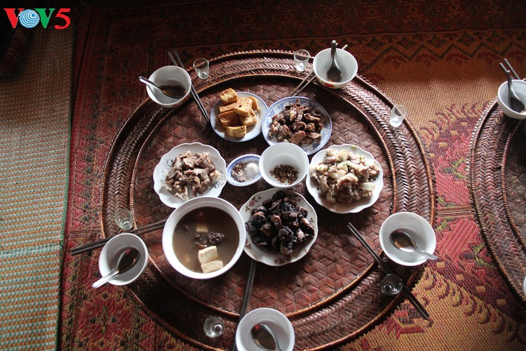 Mâm cơm truyền thống của người Thái ở Điện Biên - Ảnh: Lan Anh/VOV5 |
