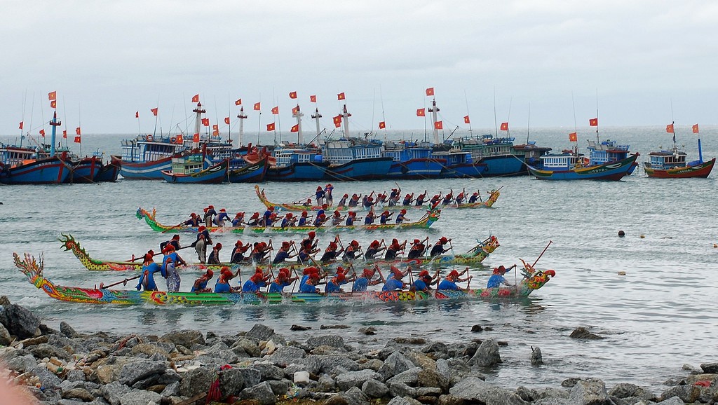 Lễ hội đua thuyền ở đảo Lý Sơn (Quảng Ngãi) bây giờ được tổ chức hàng năm nhằm tri ân tổ tiên; tưởng nhớ đội hùng binh Hoàng Sa năm xưa dong buồm ra khơi dựng bia cắm mốc chủ quyền trên hai quần đảo Hoàng Sa và Trường Sa.- Ảnh: internet.