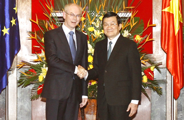 | Chủ tịch Hội đồng Châu Âu Herman Van Rompuy trong chuyến thăm chính thức VN theo lời mời của Chủ tịch nước VN Trương Tấn Sang |