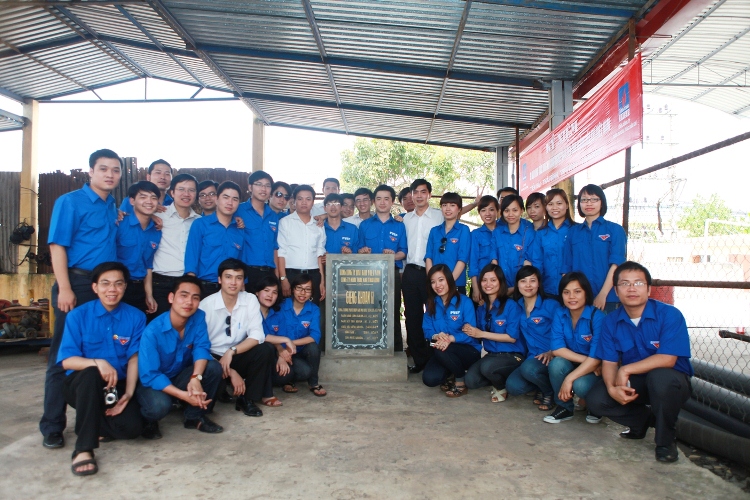 | Đoàn viên Thanh niên Tổng Công ty Thăm dò Khai thác Dầu khí thăm lại giếng khoan 61, giếng khoan phát hiện khí đầu tiên tại mỏ Tiền Hải C.Ảnh: pvef.com.vn |