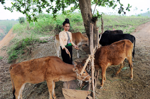 | Ðồng bào dân tộc Thái ở huyện Quỳnh Nhai (Sơn La) đầu tư chăn nuôi bò, từng bước thoát nghèo. Ảnh: NGUYỄN DUY |
