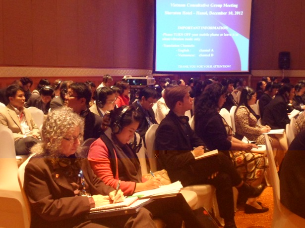 Bà Victoria Kwakwa, Giám đốc ngân hàng thế giới tại Việt Nam, đồng chủ trì Hội nghị CG năm 2012, khẳng định việc thay đổi tên gọi và nội dung của Hội nghị CG là một tiến trình tất yếu. Bà Victoria Kwakwa cho biết Hội nghị CG 2012, Chính phủ và các đối tác Phát triển đã dành nhiều thời gian trao đổi về việc Hội nghị CG cho Việt Nam sẽ phát triển như thế nào trong giai đoạn mới của đất nước cũng như tình hình có nhiều thay đổi của các đối tác phát triển ở Việt Nam:“Hội nghị các nhà tài trợ cho Việt Nam lần này sẽ là hội nghị cuối cùng được tổ chức theo mô hình được thiết kế từ 20 năm trước chủ yếu để phục vụ cho diễn đàn huy động nguồn lực ODA. Điều cần thiết hiện nay là cần có một diễn đàn đối thoại mở rộng và hợp lý giữa Chính phủ và các đối tác về phát triển của Việt Nam. Hai mươi năm trước, đối tác chính là Chính phủ và các đối tác phát triển. Hiện nay có thêm nhiều đối tác trong quá trình phát triển của Việt Nam – xã hội dân sự cả trong nước và quốc tế, cũng như khu vực tư nhân. Chúng tôi hy vọng rằng hình thức diễn đàn mới sẽ giúp bao trùm cả nhóm mở rộng này, giúp sử dụng một cách hiệu quả tham gia của các bên liên quan. Chúng tôi rất mong CG sẽ theo định hướng hành động hơn và xác định được các lĩnh vực tập trung sau đó một cách cụ thể.”