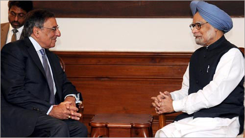Bộ trưởng Quốc phòng Mỹ Leon Panetta trong cuộc gặp với Thủ tướng Ấn Độ Manmohan Singh (Ảnh: MBS)