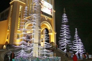 | Cây thông điện được trang trí trước Nhà thờ chính tòa Đà Lạt. (Ảnh minh họa: Thanh Tùng/TTXVN) |