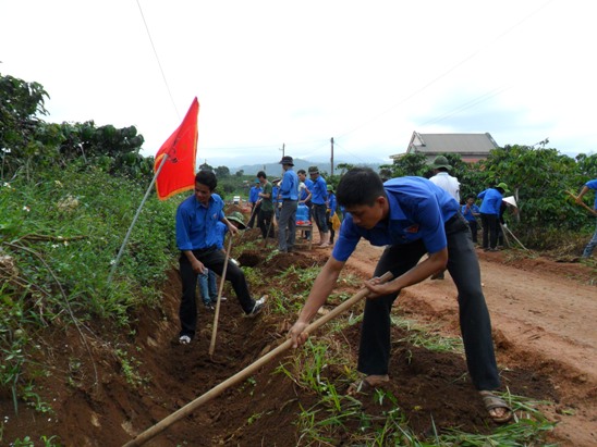 Đoàn viên thanh niên huyện Di Linh, tỉnh Lâm Đồng tham gia công tác dân vận