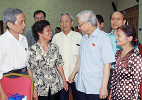 Tổng Bí thư Nguyễn Phú Trọng với cử tri quận Hoàn Kiếm. Ảnh: TTXVN.