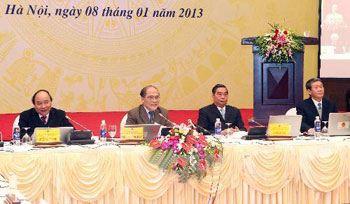 Lãnh đạo Đảng, Nhà nước chủ trì Hội nghị toàn quốc triển khai việc tổ chức lấy ý kiến nhân dân về Dự thảo sửa đổi Hiến pháp năm 1992. Ảnh: TTXVN
