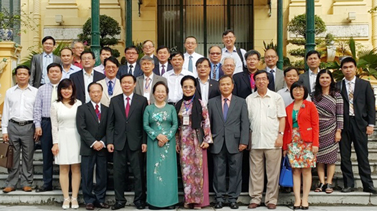 | Phó Chủ tịch nước Nguyễn Thị Doan với các nhà khoa học, trí thức Việt kiều. |