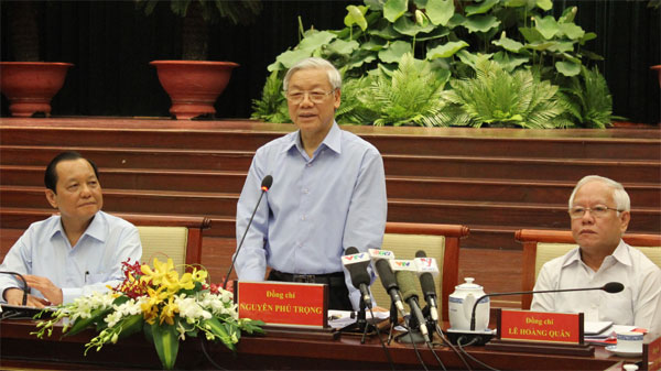 | Tổng Bí thư Nguyễn Phú Trọng kiểm tra tình hình thực hiện Nghị quyết Trung ương 4 (khóa XI) tại TP Hồ Chí Minh ngày 29/3 vừa qua (ảnh: Vũ Duy) |