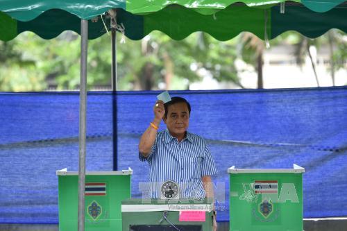 | Thủ tướng Prayuth Chan-ocha bỏ phiếu trong cuộc trưng cầu dân ý ở Bangkok ngày 7/8. Ảnh: THX/TTXVN |