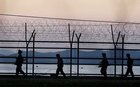 Quân đội Hàn Quốc tuần tra dọc biên giới (Ảnh AP)