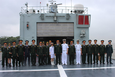 | Đoàn sĩ quan trẻ Việt Nam thăm và giao lưu với cán bộ, chiến sĩ tàu 542 Khu Thủy cảnh, Hải quân Thượng Hải. (Ảnh: qdnd) |